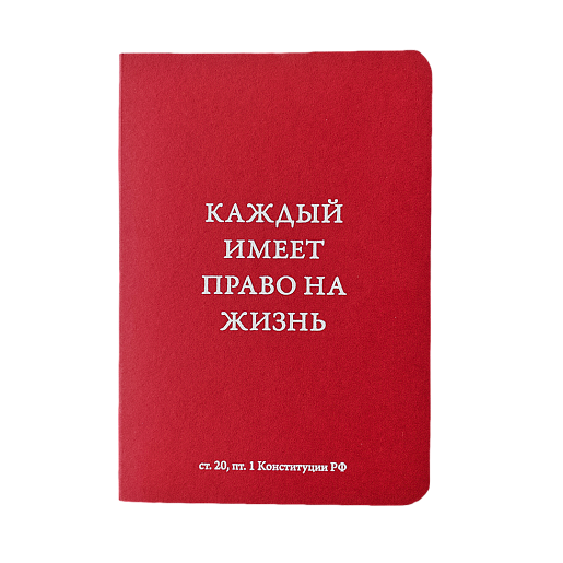 Блокнот А6 с цитатой «Каждый имеет право на жизнь» из статьи 20.1 Конституции Российской Федерации.