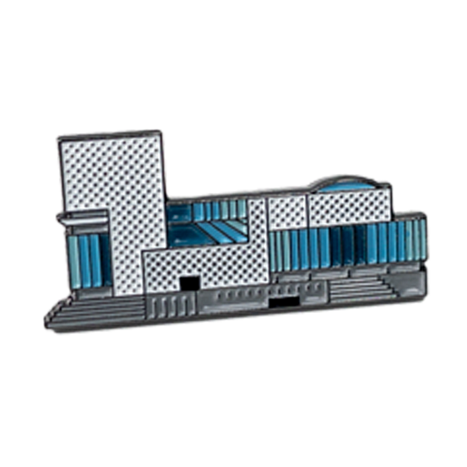 Металлический значок с изображением Ельцин Центра со стороны набережной реки Исеть