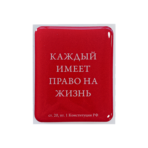 Наклейка с заливной смолой с цитатой «Каждый имеет право на жизнь» из статьи 20.1 Конституции Российской Федерации
