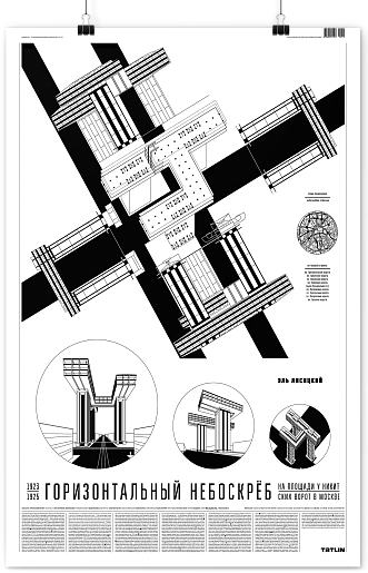 Эль Лисицкий (1890–1941), один из выдающихся представителей русского и еврейского авангарда, способствовал выходу супрематизма в архитектуру. Его проект «Горизонтальных небоскребов» может по праву считаться самым узнаваемым, с явно выраженной авторской позицией работой. Он был разработан в нескольких вариантах для площадей Бульварного кольца в Москве и датируется 1923–1925 годами. Лисицкий стремился подчеркнуть своими небоскребами места схождения улиц к бывшим воротам Белого города — третьей черты укреплений центра Москвы. Архитектор предложил, прежде всего, градостроительную идею, не нарушая историческую ткань и подчеркнув ее специфику. Он показал свои небоскебы на местах восьми древних ворот — Яузских, Покровских, Сретенских, Петровских, Тверских, Никитских, Арбатских, Пречистенских. В проекте заложены все черты массовой архитектуры будущего, заявленные ведущими зодчими Европы и аргументированные наиболее четко Ле Корбюзье.